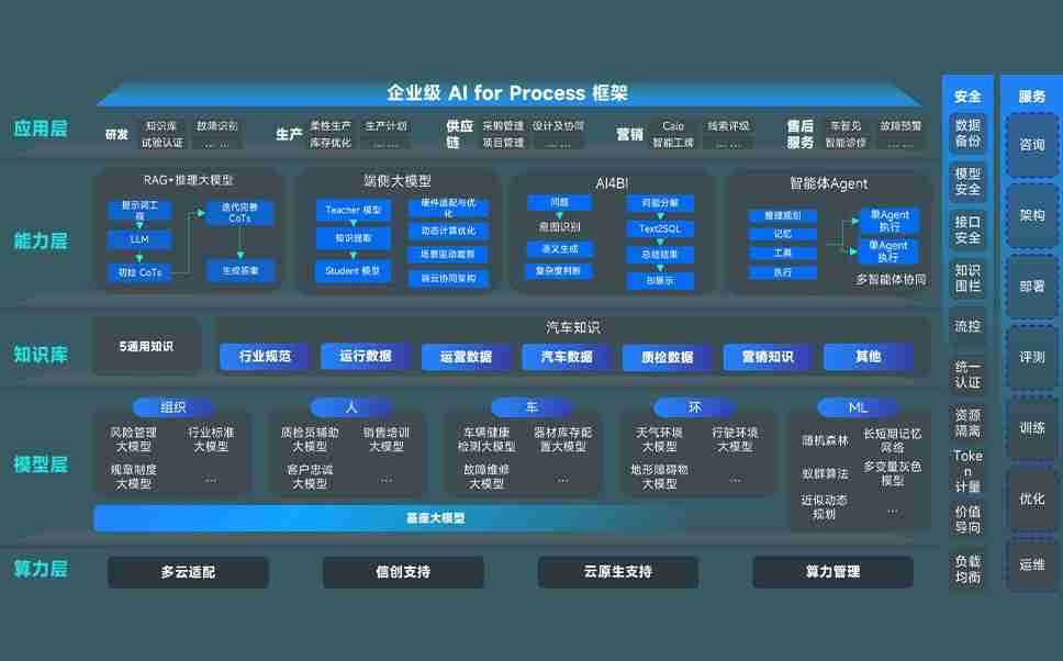 端到端的一站式AI工作空间深度融合了从企业战略规划到日常经营的全流程业务板块,,,定向解决车企内部领域多、、、部门多、、、链条长、、场景碎片化等难题,,,支持车企快速构建以AI为核心的生产力写作体系,,实现任务执行与AI能力的无缝集成与交互